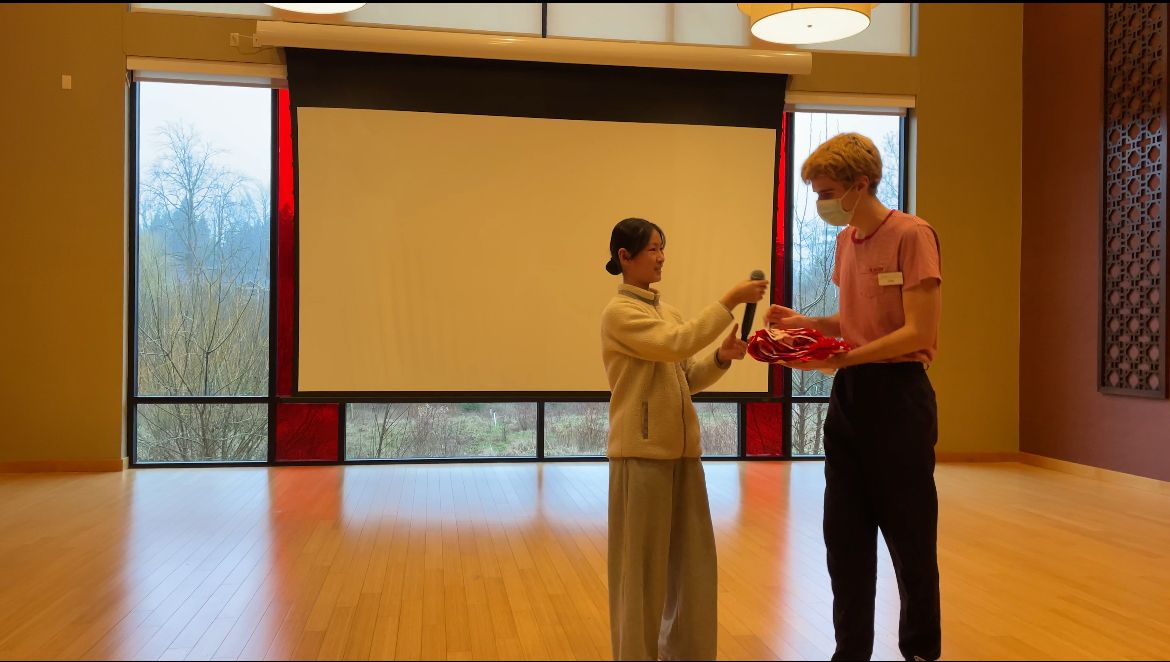 At the end of the performance, PSP lead, Leevia Wang, presented traditional Chinese paper-cuts to Aegis Gardens made by the LMC Art Group members Cindy Ma, Serena Wang, Kaylee Hu, Haoling Yang, and Jinyi Kou. These paper-cuts symbolized good luck for the Year of the Dragon and conveyed our best wishes to the community.