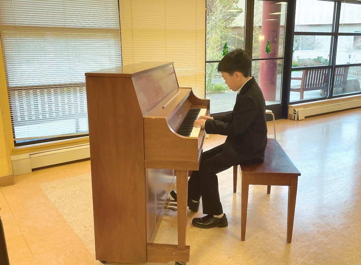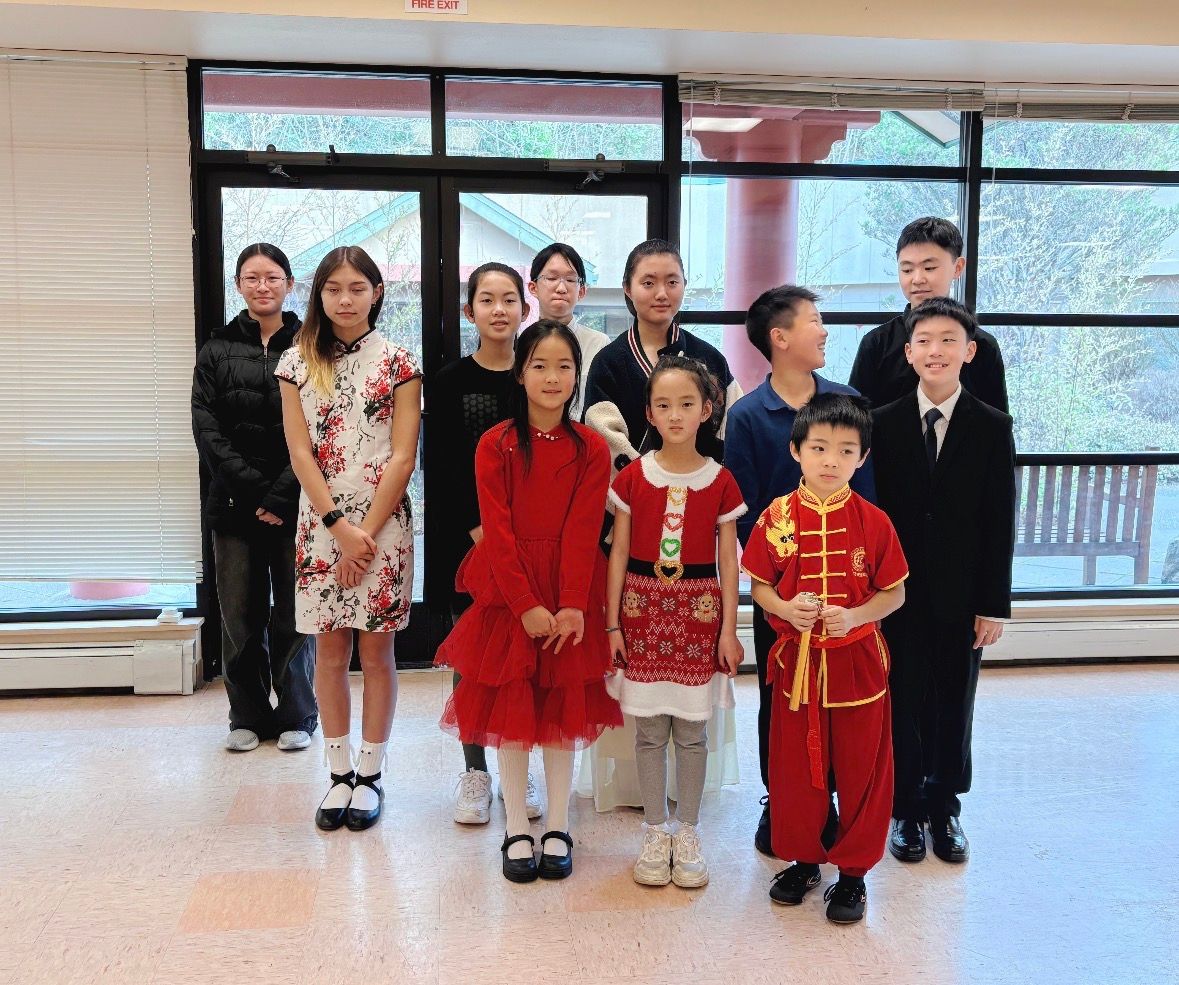 Hengxu Wang - MCTyler Sun - Piano: 肖邦 波兰舞曲Ginger Shen - Guzheng: 劳动最光荣 William Wei - Recorder: You Raised Me Up & KungfuSteven Li - Piano: Confessions in the Moonlight by Joe HisaishiAlbert Sun and Natalie Sun - Violin Duet: Jolly Old Saint Nicholas & Ave MariaElly Hefel - Vocal: 雪落下的聲音Brain Liang - Piano: Debussy Children's CornerAndrew Liang - Clarinet: De ConcoursAlice Zeng - Cello: Sicilienne by Maria Theresia von ParadisEmily Wei - Flute: Little SuiteCindy Dou - Piano - Suite from Holberg's Time, Op. 40 I. PreludeGroup Picture