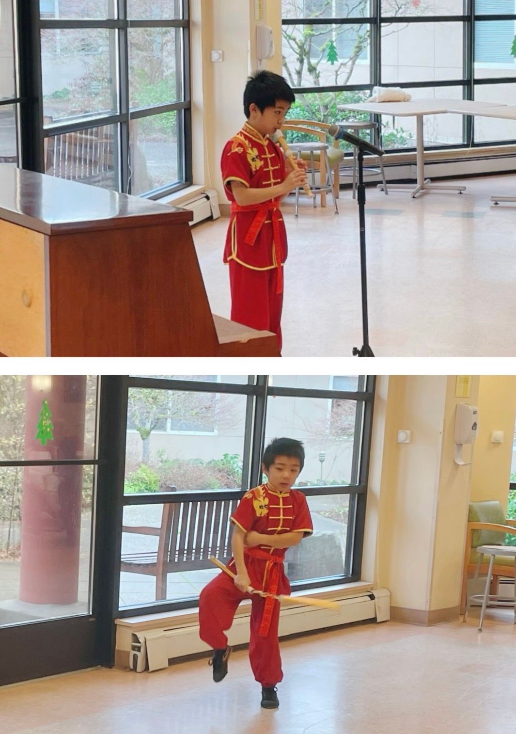 The weather was cooperative, and the young performers arrived at the Kin On Health Care Center on time. At 11:00 a.m., the performance officially began. The program featured a rich variety of performances, including singing, violin, cello, clarinet, flute, piano, and kung fu. Each performance was thoughtfully prepared and warmly received by the audience.